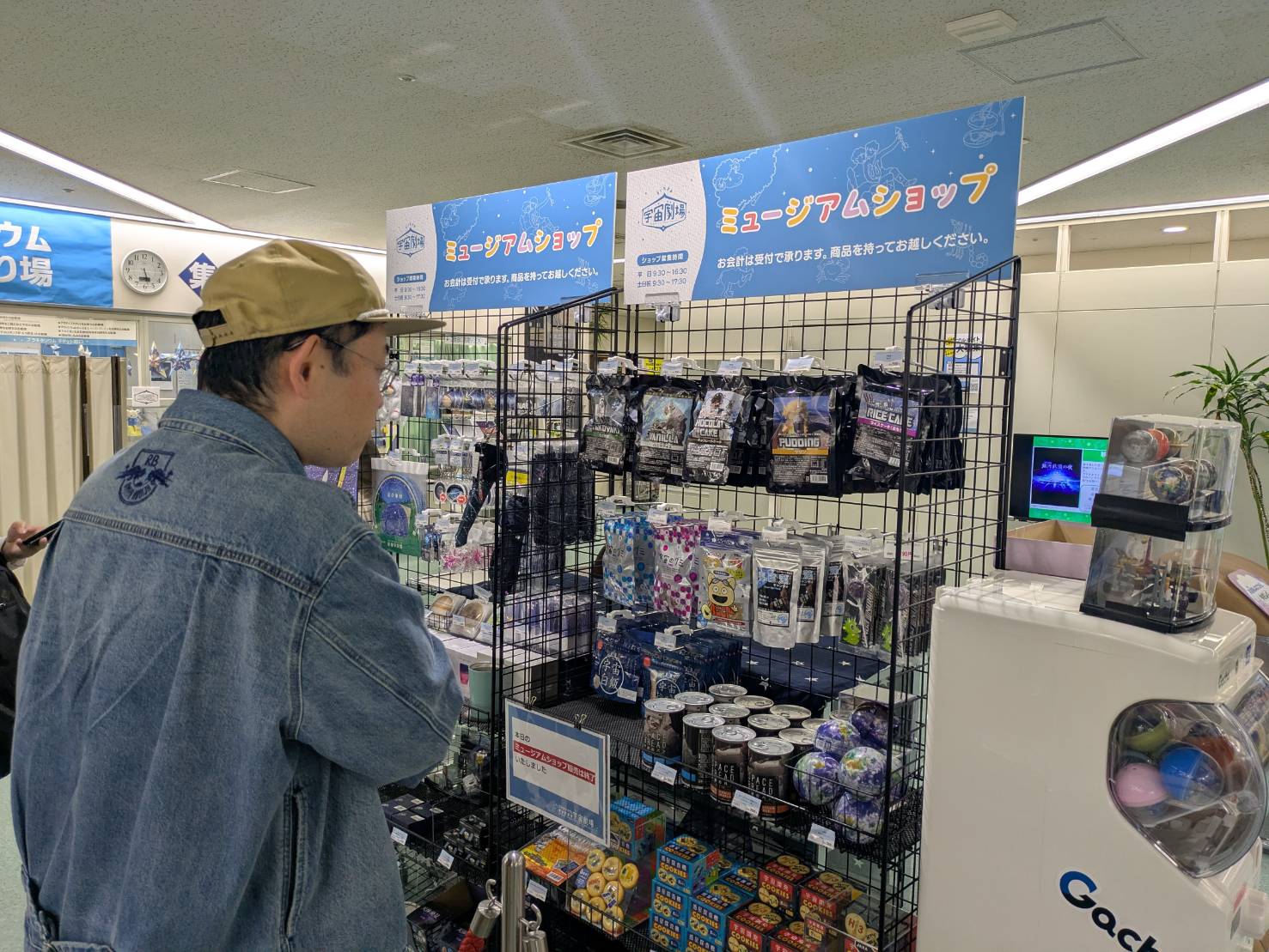 伊東「こちらが5階になります。チケットを買っていただく券売機、ちょっとした展示やショップもあります。手作り感満載なんで、ちょっとあれですけど……」