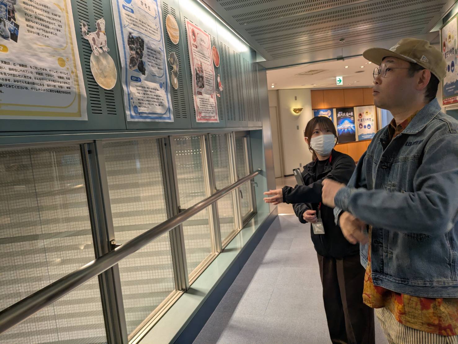 伊東「3階にあるのは若田さんのこの展示と、二つある渡り廊下で(プラネタリウム上映時に内容を説明してくれる)解説員のプロフィール紹介などをしています」