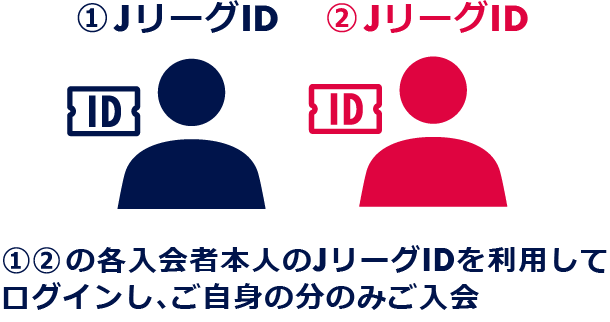 - 家族内でも1人1つのJリーグIDが必要となりますので、お手数ですがお子さまなどメールアドレスをお持ちでない方もフリーアドレスなどを利用しJリーグID登録をお願いします。