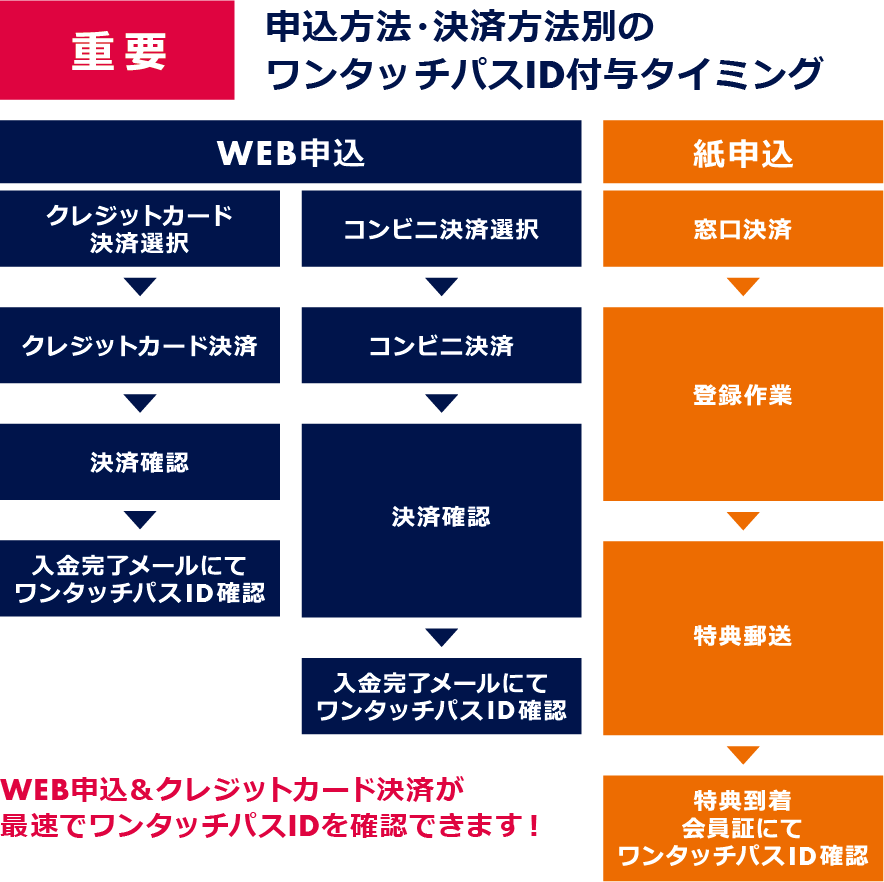 - 特典がお手元に届くまではいかなる場合でも特典利用はいただけませんが、 ワンタッチパスIDが付与されたあとに利用できる特典に関しては各種ご利用いただけます。