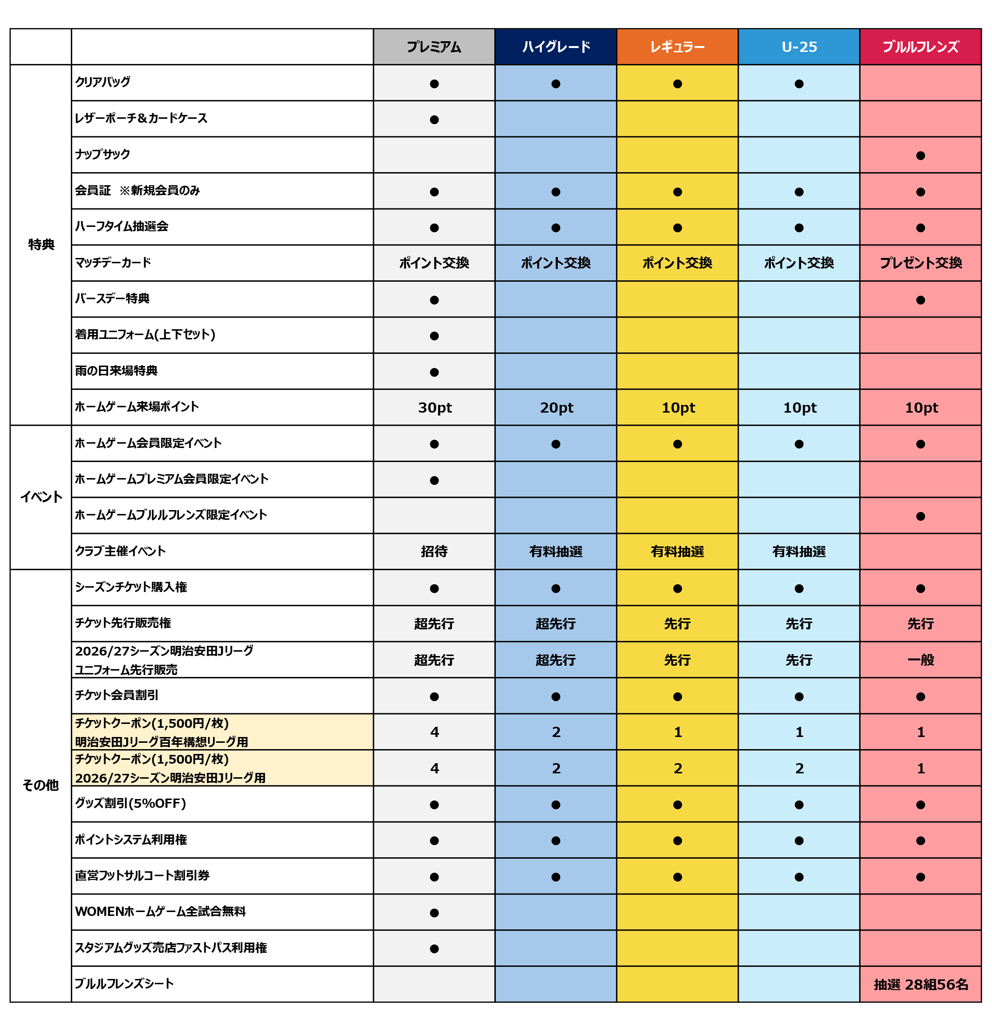 同シーズン内に他のファンクラブランクへの変更はできません。併せてファンクラブに入会した後にシーズンチケットのみの追加購入も同シーズン内ではできません。ご希望の方は初回の入会手続きの際にご希望のランク等をお選びください。