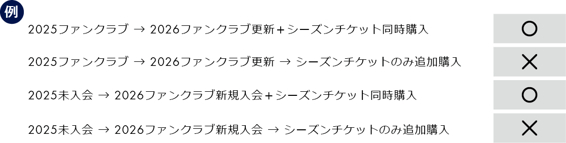 明治安田Jリーグ百年構想リーグでファンクラブにのみ入会されている方がシーズンチケットを追加で購入できるのは、2026/27シーズン明治安田Jリーグからとなります。