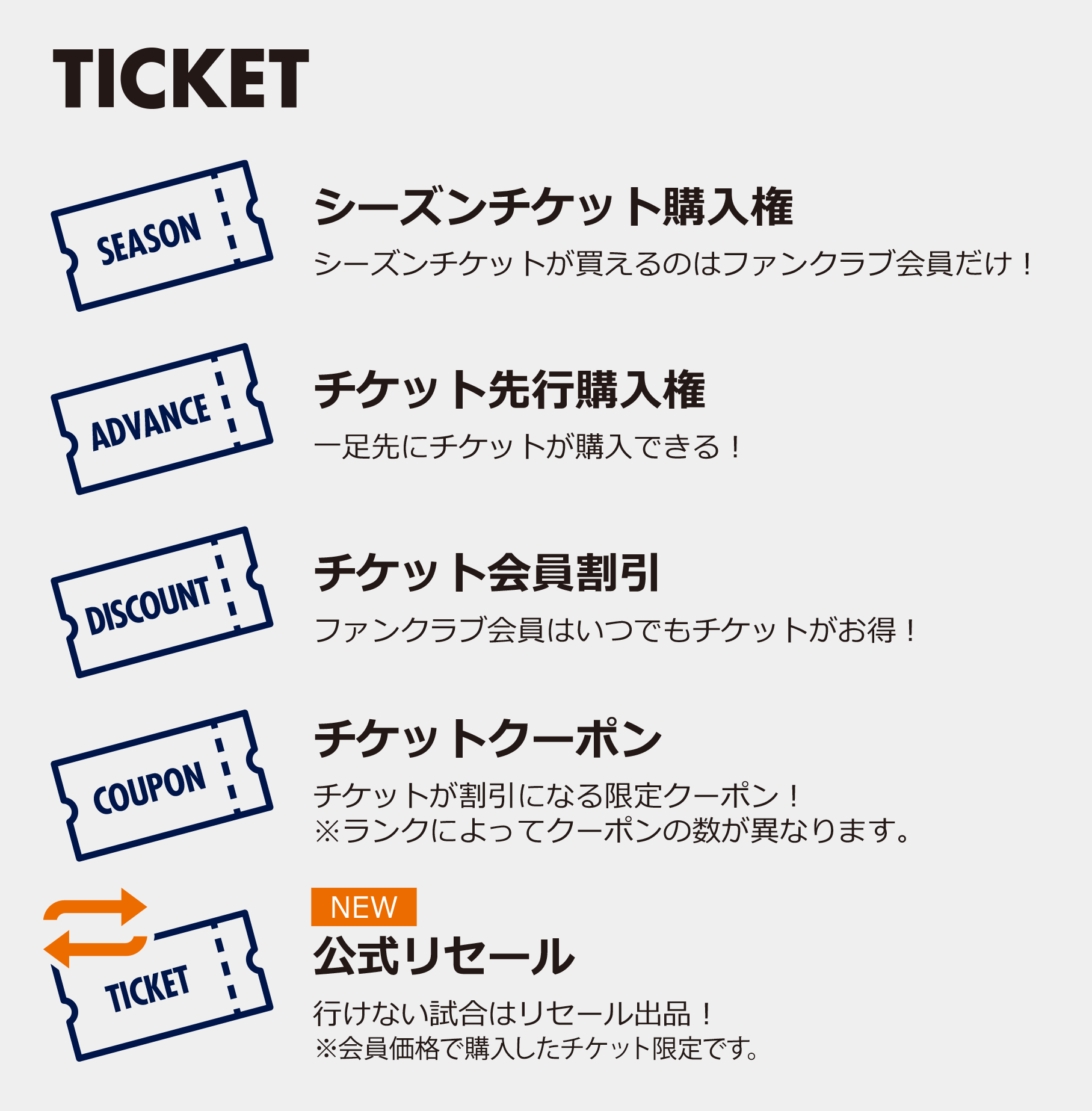 ファンクラブのランクやシーズンチケットの詳細が確認できます。