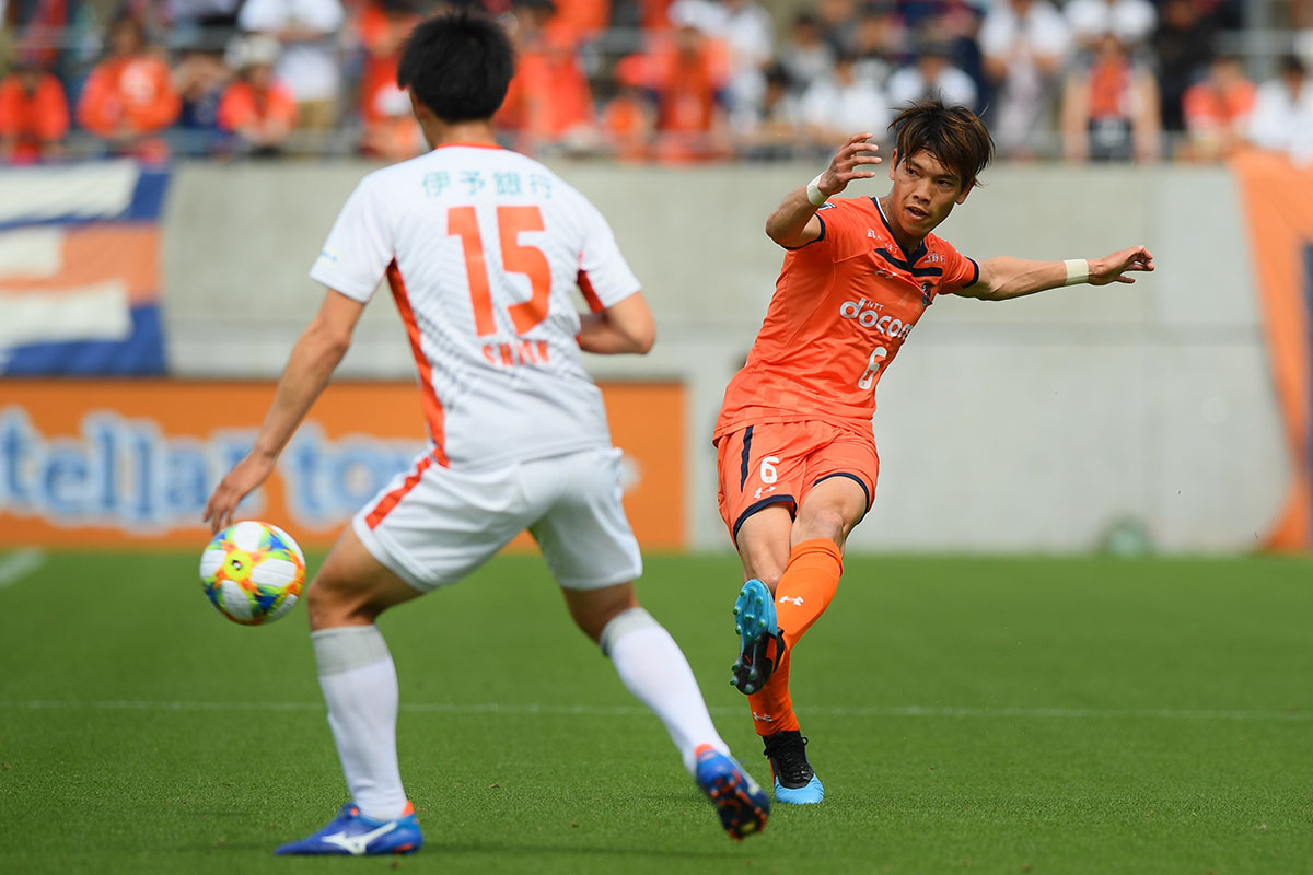 明治安田J2第12節は、愛媛を相手に迎えるホームゲームだ。前節は、6連勝こそかなわなかったが、引分けて勝点を上積みした。ただ、2人の選手が交代を強いられるという痛手を負った試合でもあった。その影響もあるのだろう。高木監督は、前節から先発を4人入れ替える大胆な起用に打って出た。中盤では、小島が初先発を飾った。