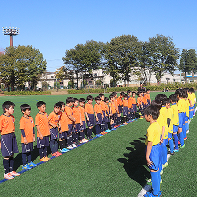 スクール交流戦は、普段のスクール活動の成果を発揮する機会としてはもちろん、他クラブとの交流や仲間とともにトップチームを応援することでサッカーを通じた仲間づくりを楽しみ、アルディージャをより好きになってもらうことを目的に開催しています。今回は小学3・4年生を対象に、栃木SCサッカースクール生と交流戦を行いました。