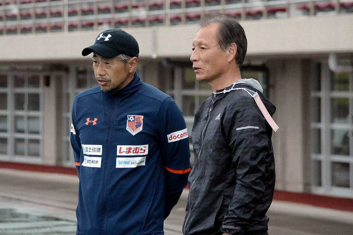 練習後、Jリーグ副理事長を務める原博実さんが訪れ、高木監督と談笑していました。そこに、かしこまった面持ちで挨拶に向かう富山貴光選手と近藤貴司選手の姿が。早稲田大学の大先輩ということで、丁重に挨拶していたのが印象的でした。おそらく畑尾大翔選手もしっかり挨拶していたことでしょう。