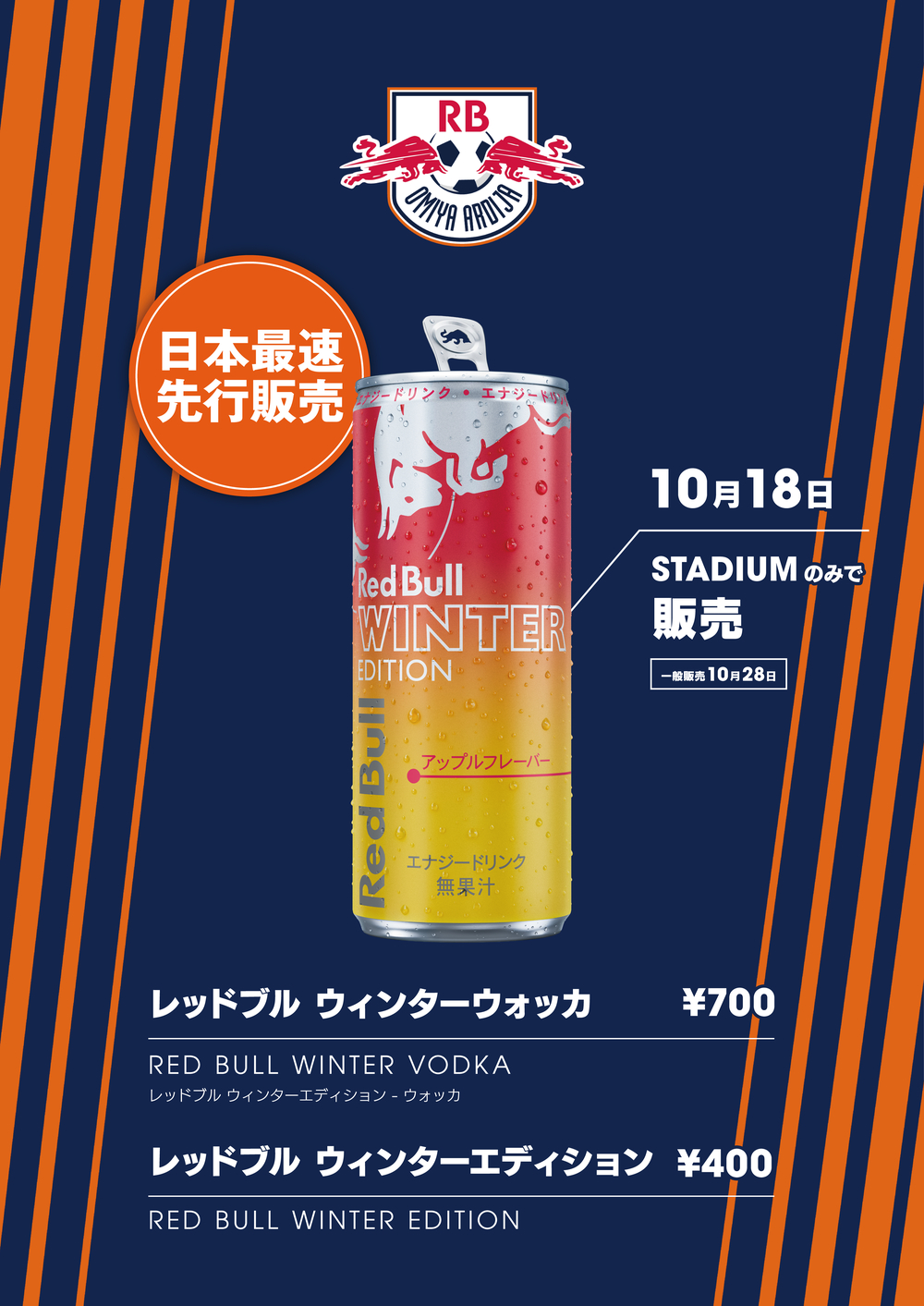 「レッドブル・エナジードリンク ウィンターエディション」の販売を記念して、10月18日(土)に開催される、2025明治安田J2リーグ第33節・藤枝MYFC戦(14:00キックオフ@NACK5スタジアム大宮)において、日本最速での先行販売を実施します!
