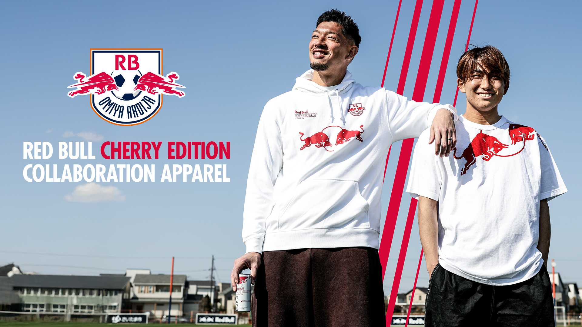 「レッドブル・チェリーエディション」の世界観を反映した特別仕様となっていて、赤と白のカラーが特徴のデザインとなります。レッドブルの缶とRB大宮アルディージャがコラボレーションした初めてのアパレルとなり、大きく描かれたブルがチームの力強さを表現しています。