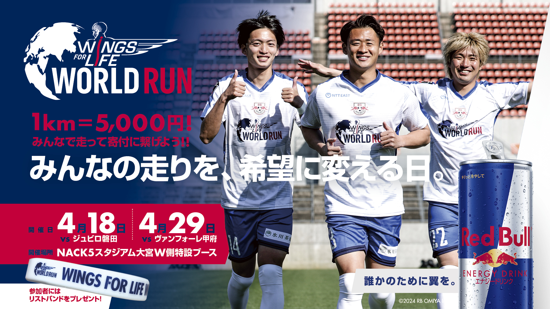 4/18・磐田戦では、世界最大規模のチャリティーランイベント「Wings for Life World Run 2026」の開催を記念し、Wings for Life World Runプレゼンツマッチを実施します。