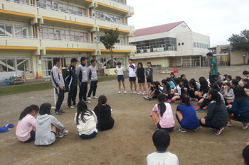最初は男女に分かれてボールフィーリングやトレーニングなど行い、最後には子供たち対コーチの試合も行いました。普段の体育の授業のサッカーとはまた違った雰囲気の中で、子どもたちはよりサッカーの楽しさ、魅力を感じてくれたことと思います。