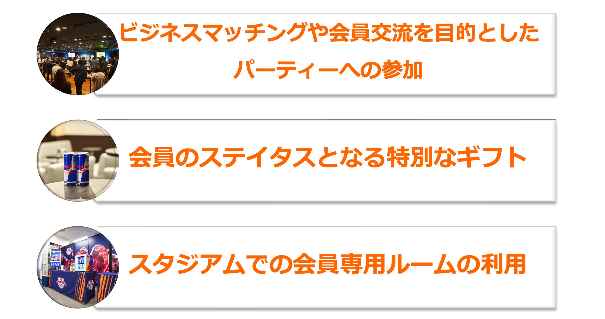 その他:公式サイトメンバー名掲出/スタジアムゲートボードメンバー名掲出/オフィシャルグッズ割引/チケット割引・優先購入/ポータルサイト(準備中)など